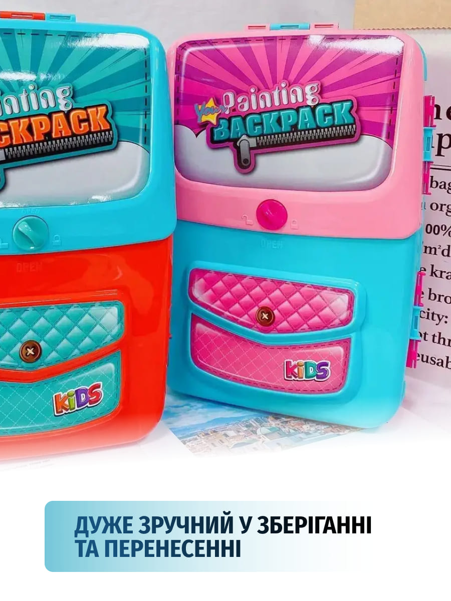 - Зручний набір-рюкзачок для перенесення та зберігання вмісту